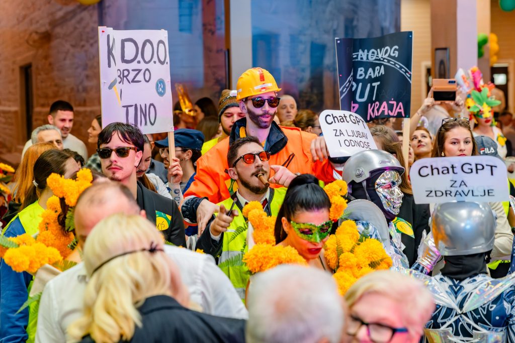Veliki maskenbal 57. Praznika mimoze obilježili su sjajna atmosfera, odlična energija više od 200 maski i gostiju, a i ovog puta, tražila se karta više za jedan od tradicionalnih mimozinih programa. Maštovitost i duhovitost u kreiranju maski, publici i žiriju je predstavljala dodatan izazov, ali su, po mišljenju publike, najbolje bile maske „Chat gpt“ u kategoriji grupnih i „Ko će gledat ove jade“ kod pojedinačnih maski.