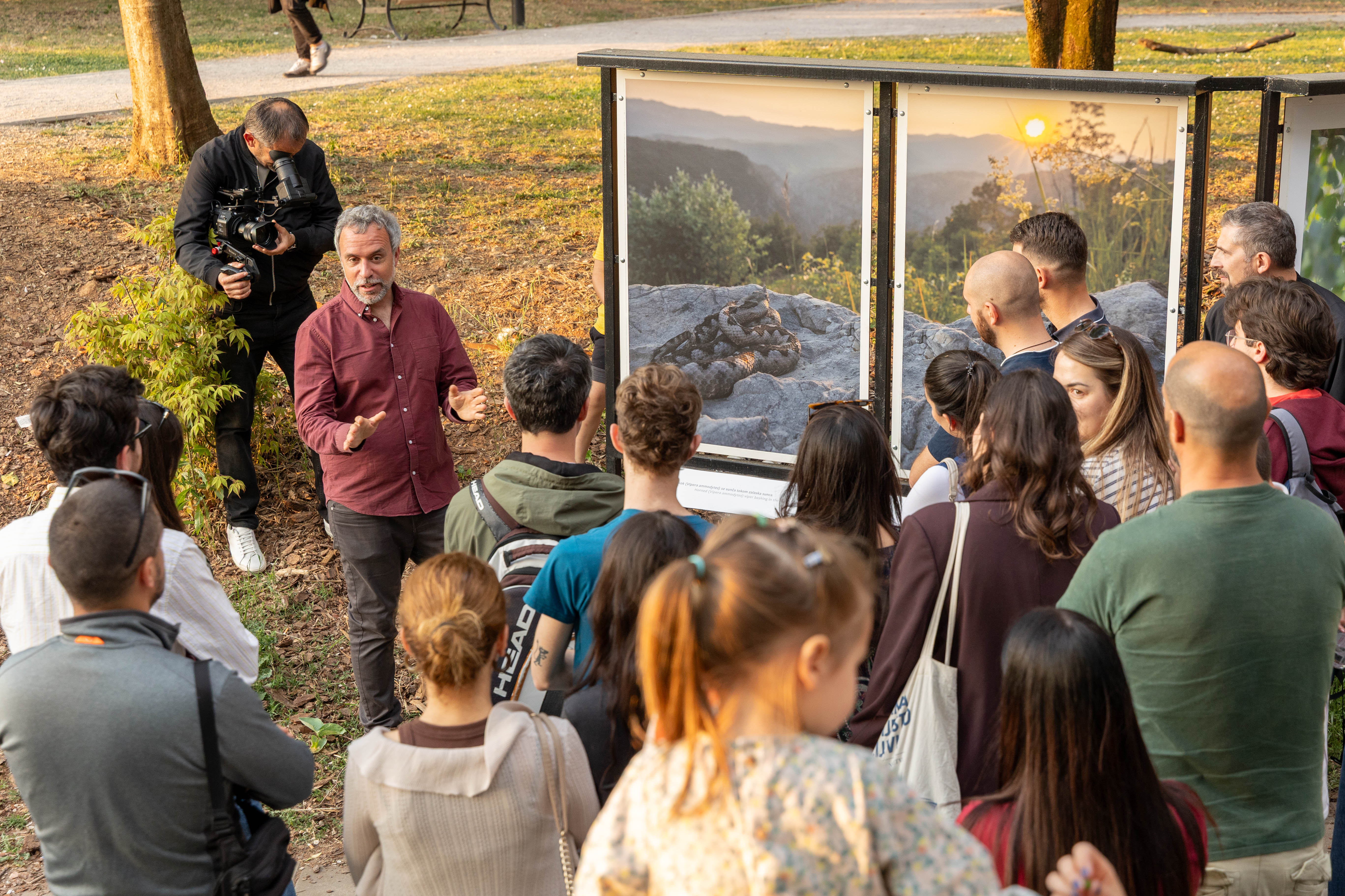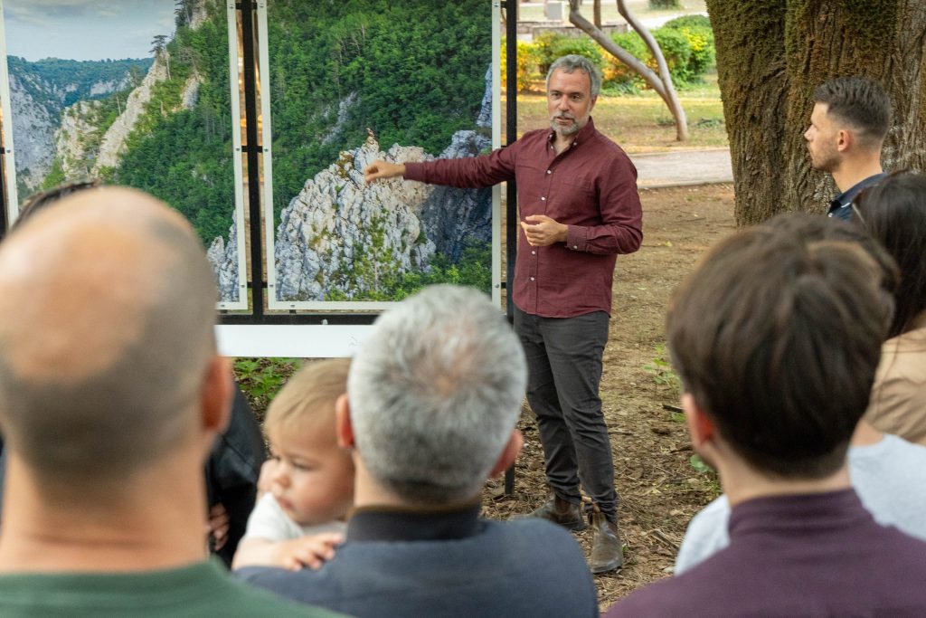 On je naglasio da je kroz izložbu želio da predstavi različite „stanovnike“ ovog prostora — od ljudi, preko starih stabala i ptica grabljivica, do najmanjih organizama koji čine njegovu složenu ekološku cjelinu.